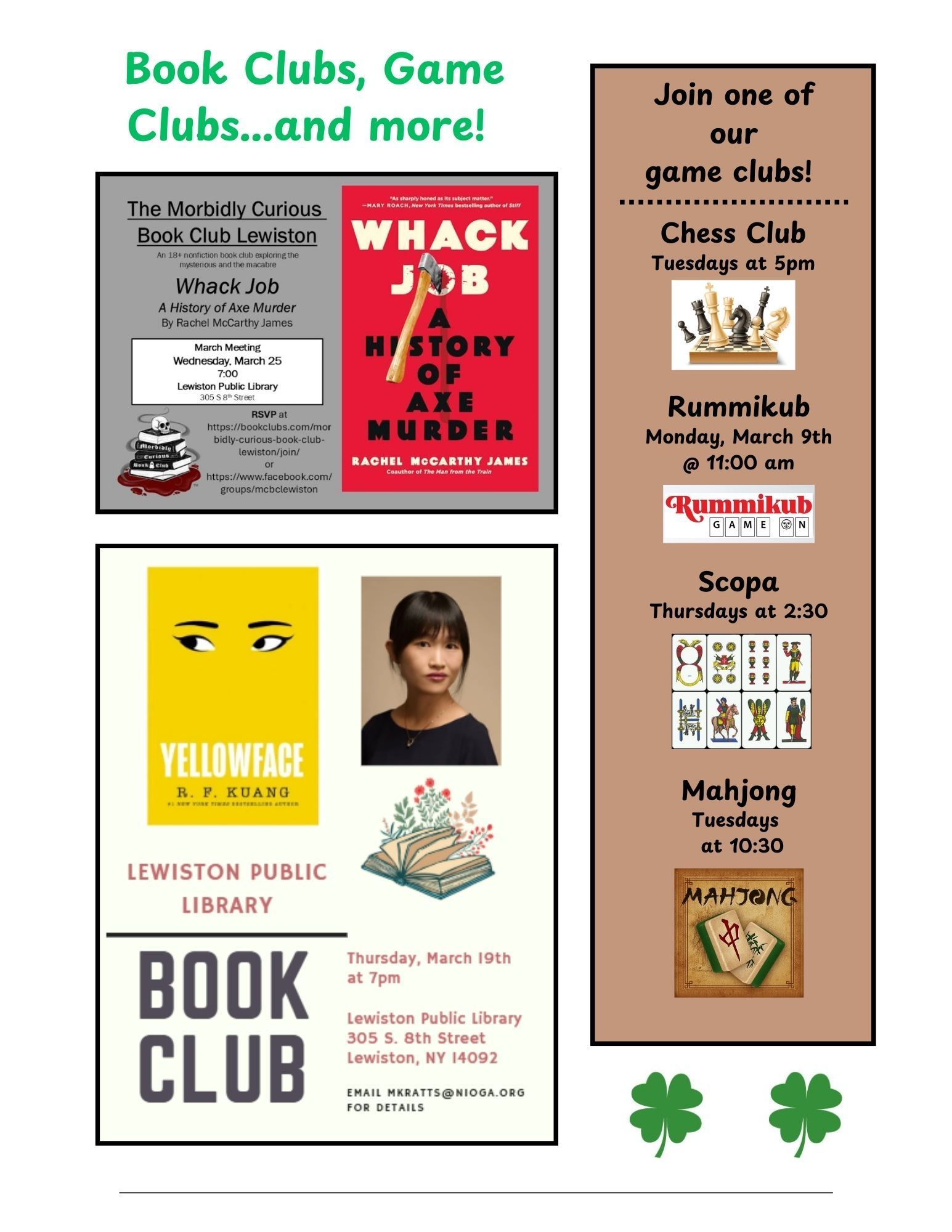 March is here! The Lewiston Public Library has many programs for the whole family!